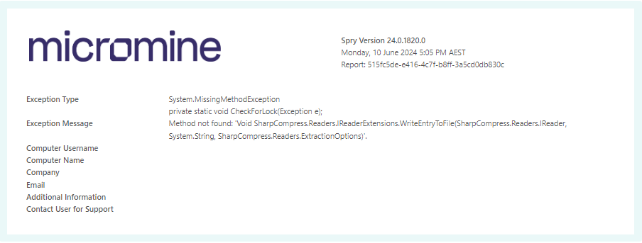 Exception Type System.MissingMethodException private static void CheckForLock(Exception e);
