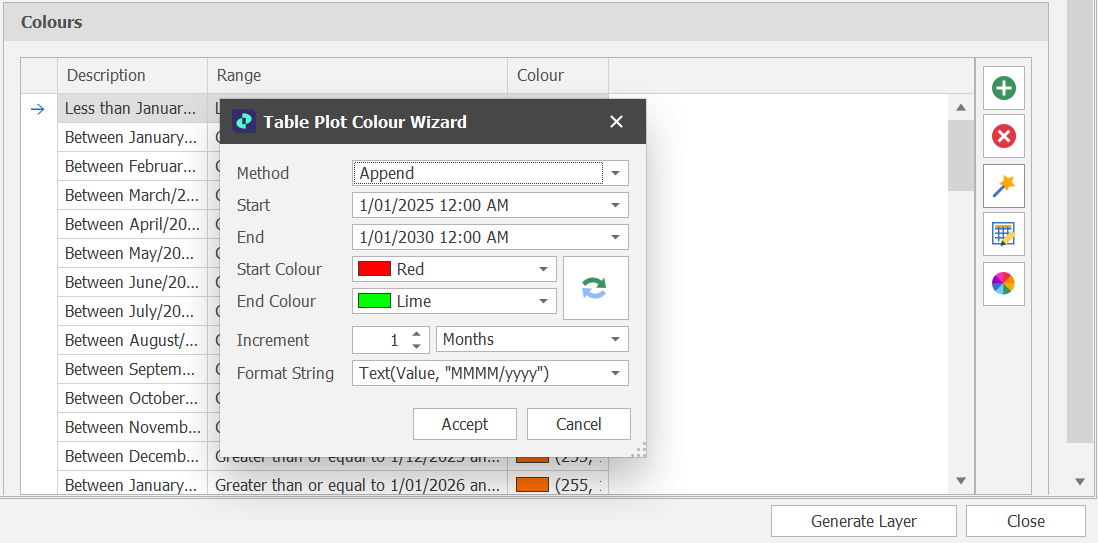 Then adjust the parameters in the Colour Wizard as you would like, before hitting Generate Layer: